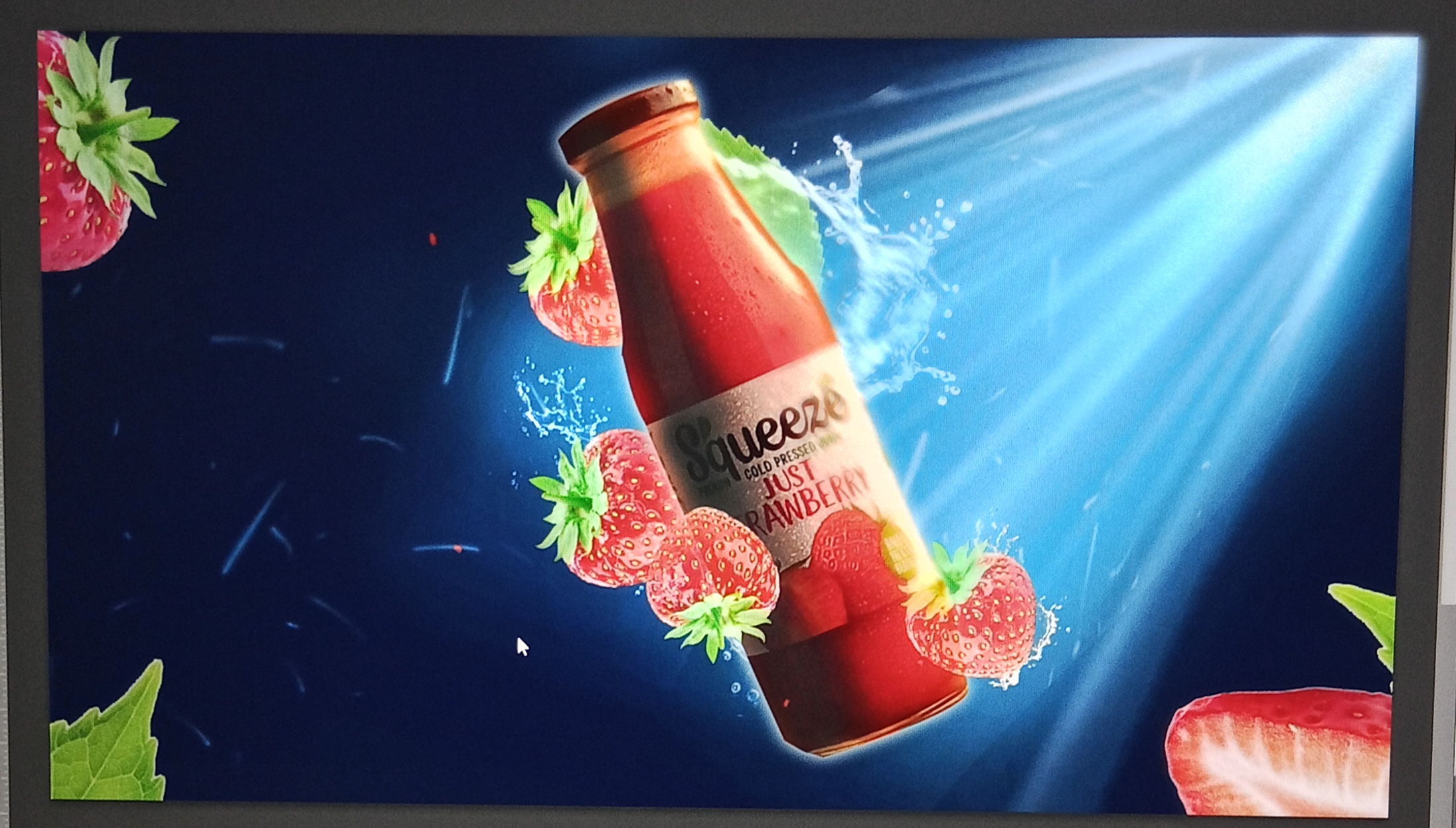 - ساهم هذا التباين في إبراز اللون الأحمر الزاهي للعصير والفراولة بشكل استثنائي، مما جعل الإعلان جذابًا للعين ومحفزًا للمشاهد.