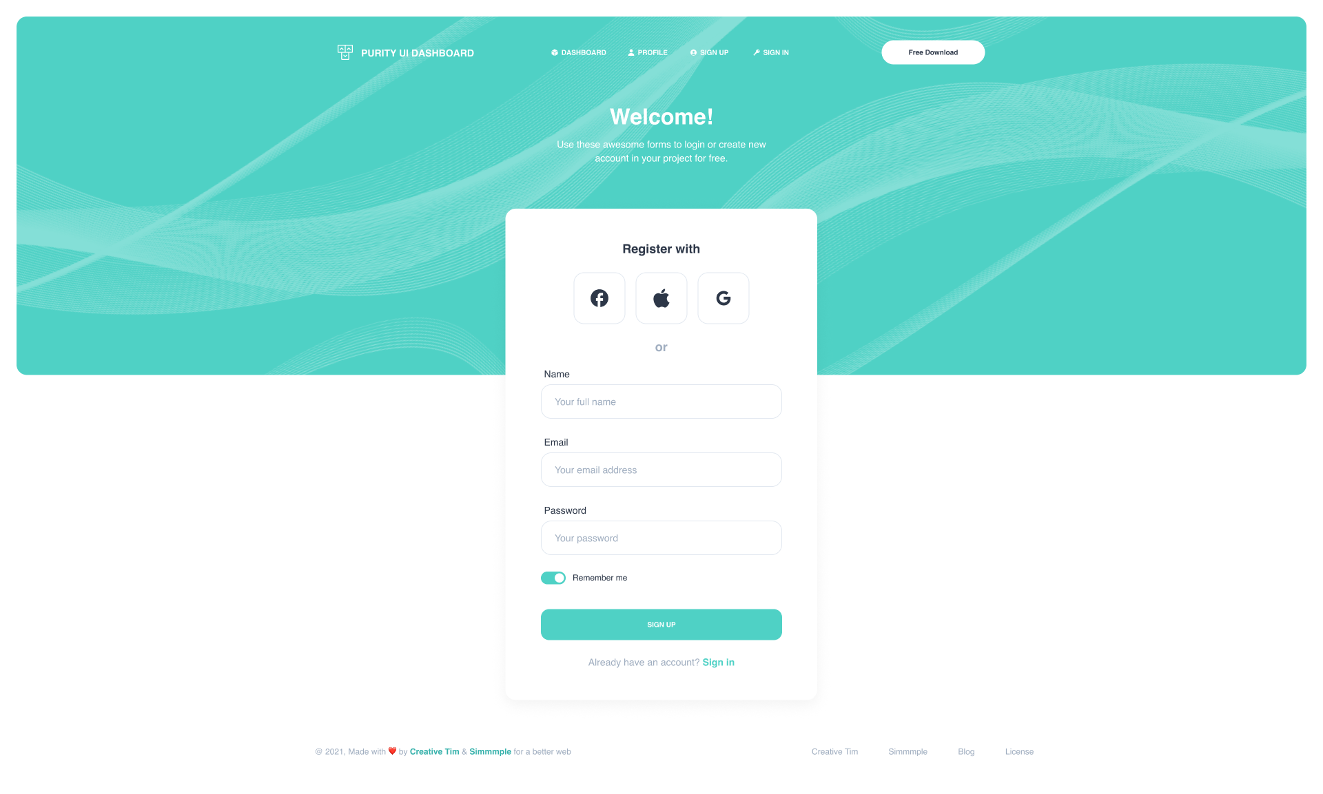 صفحات الحسابات (الملف الشخصي Profile، تسجيل الدخول Sign In، وإنشاء حساب Sign Up).