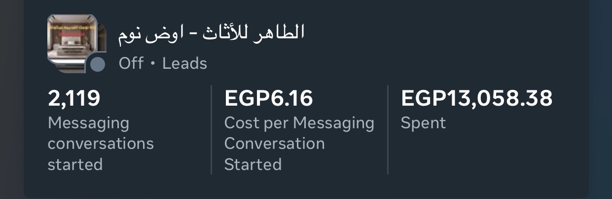 كامبين لبيع غرف نوم في مجال الأثاث المنزلي بأقل بادجيت ممكنة وبأعلي نتايج كما هو موضح بالصورةً