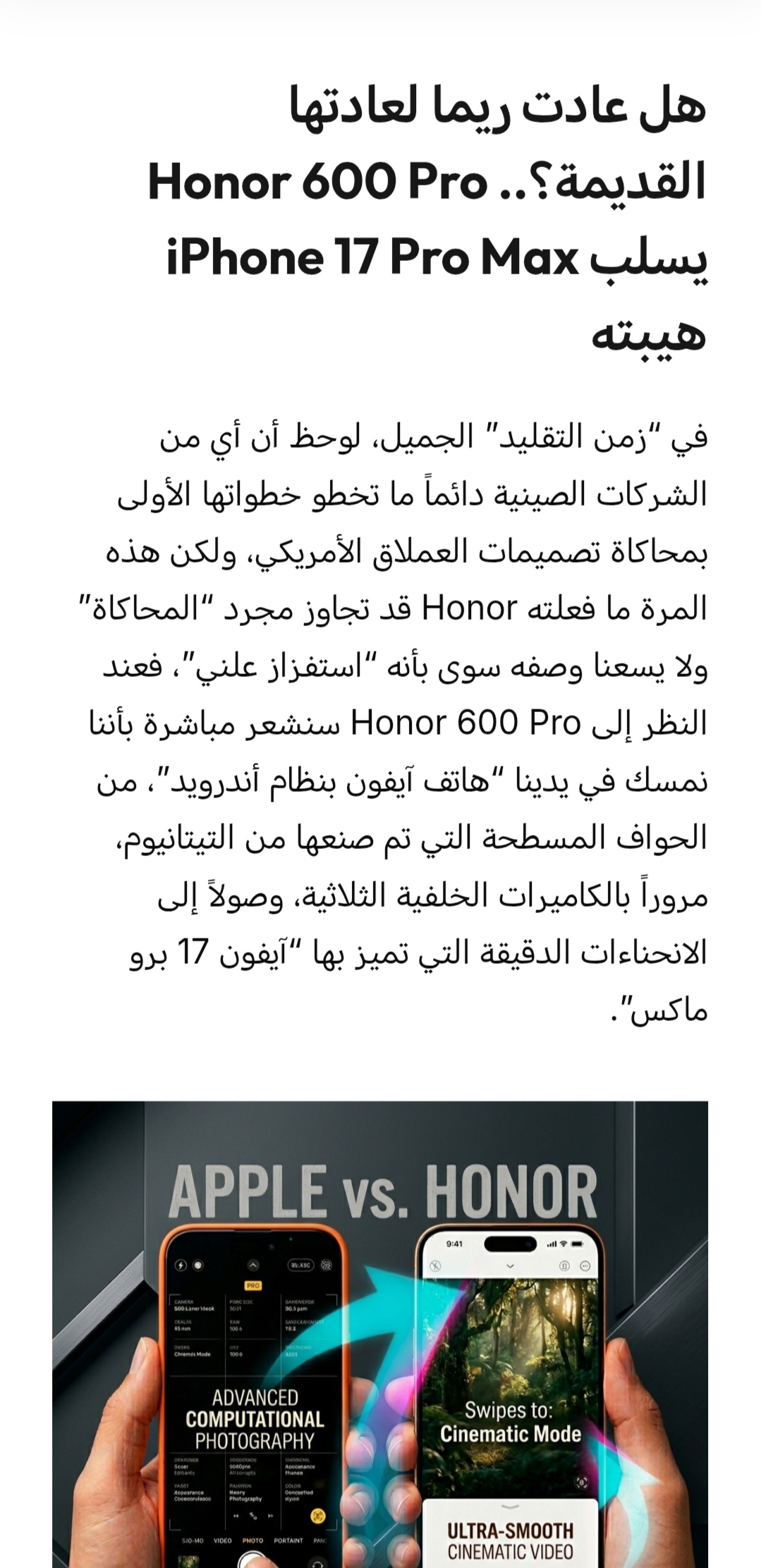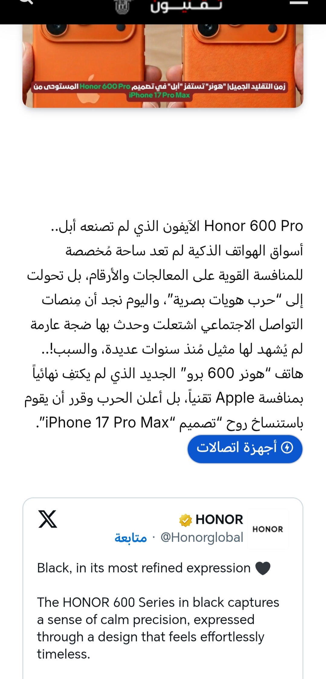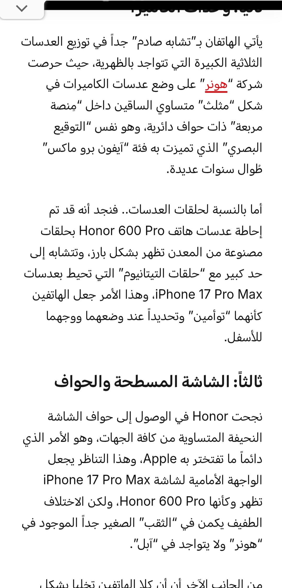 مقارنة بين Honor 600 Pro و iPhone 17 Pro Max