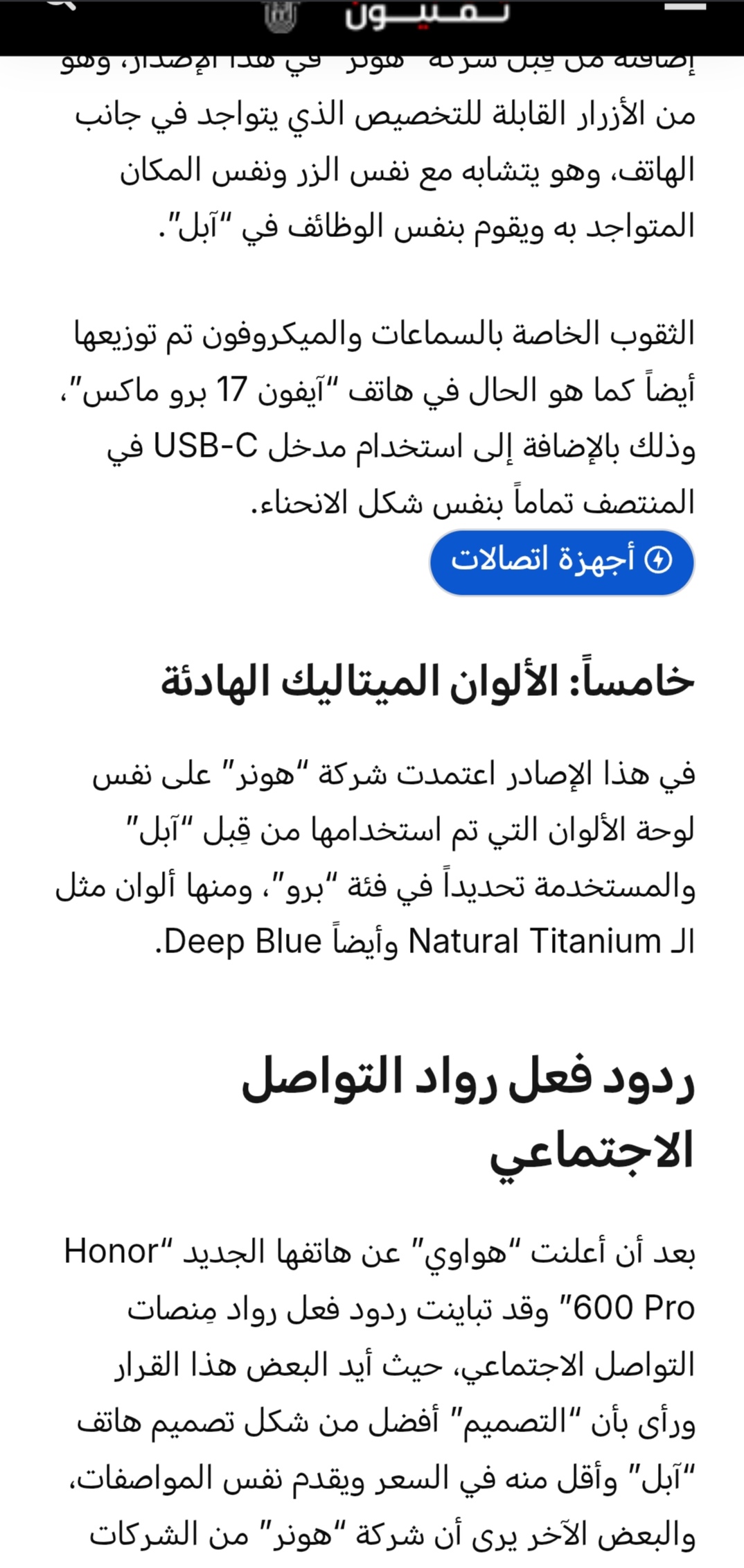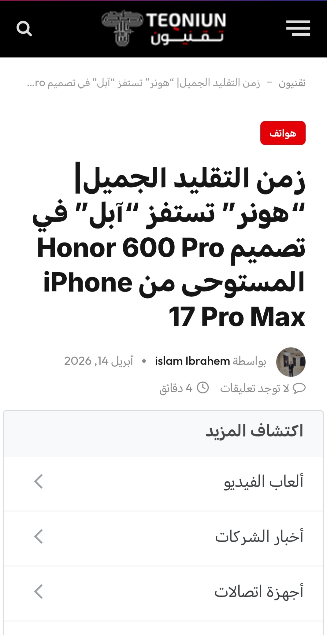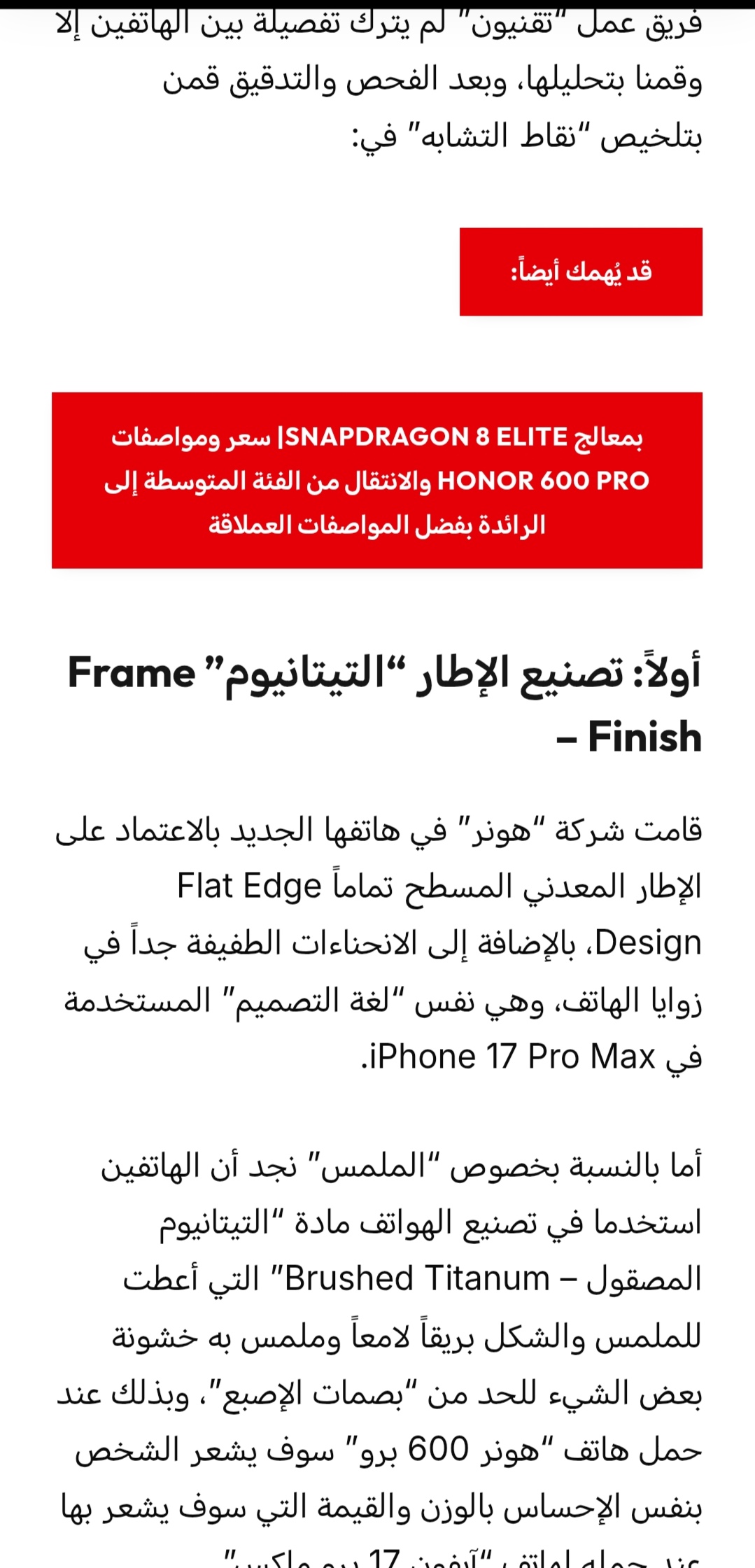 مقارنة بين Honor 600 Pro و iPhone 17 Pro Max
