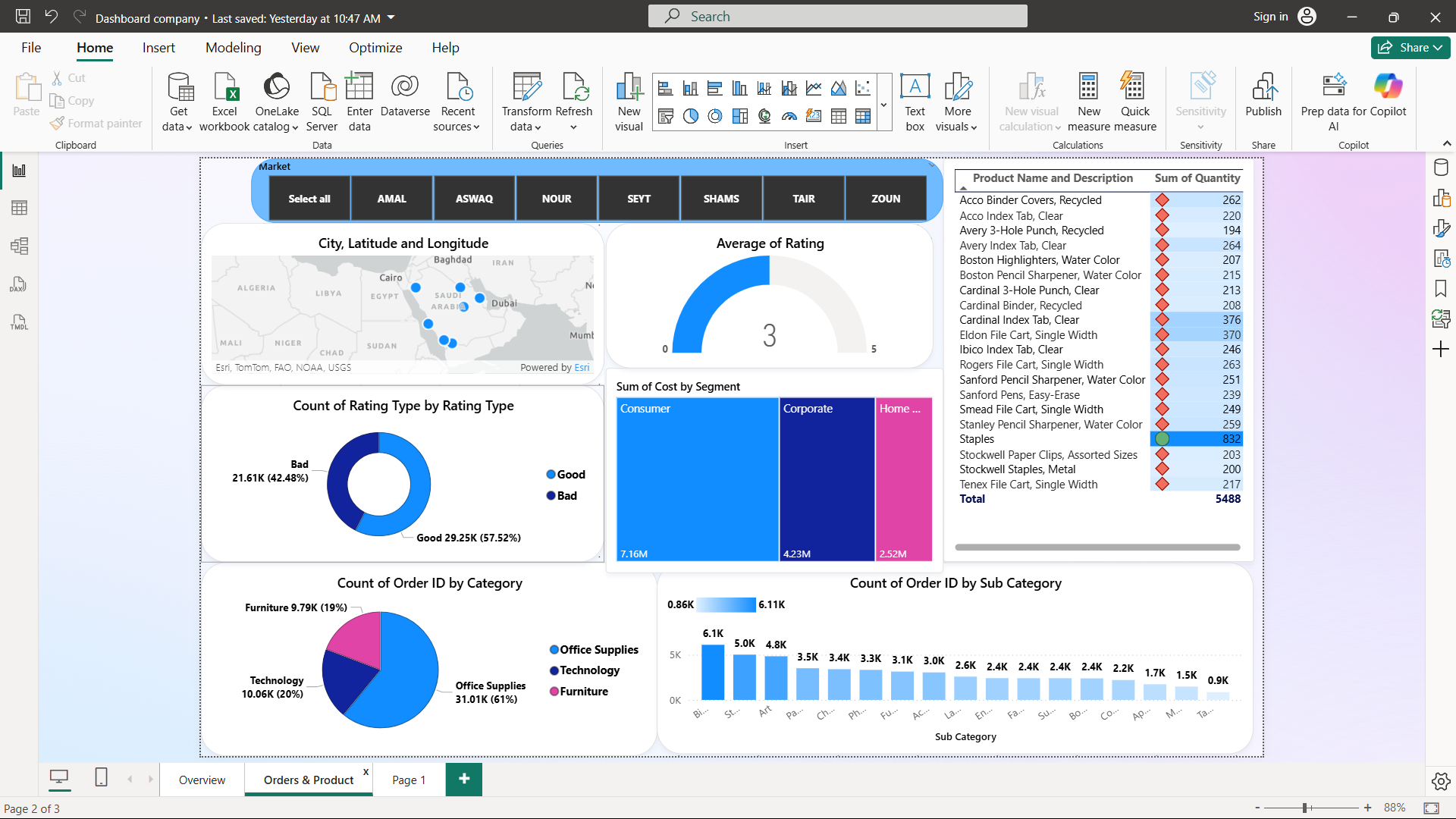 تحليل تفصيلي لأداء المنتجات والفئات، وتقييم جودة الطلبات (Good/Bad Rating)، وتوزيع التكاليف حسب شريحة العملاء.