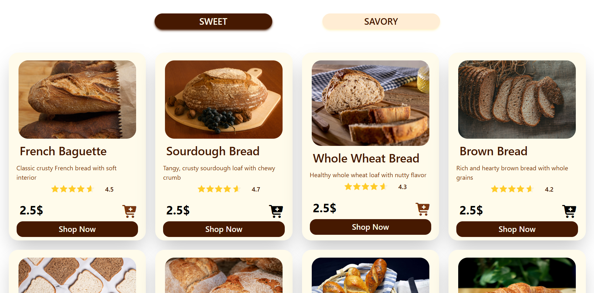 موقع "Bakery Store" متكامل لطلب المخبوزات أون***، ركزت فيه على بساطة التصميم وسرعة الاستخدام. الموقع مش مجرد شكل، ده كود متجرب وشغال صح على كل الأجهزة.