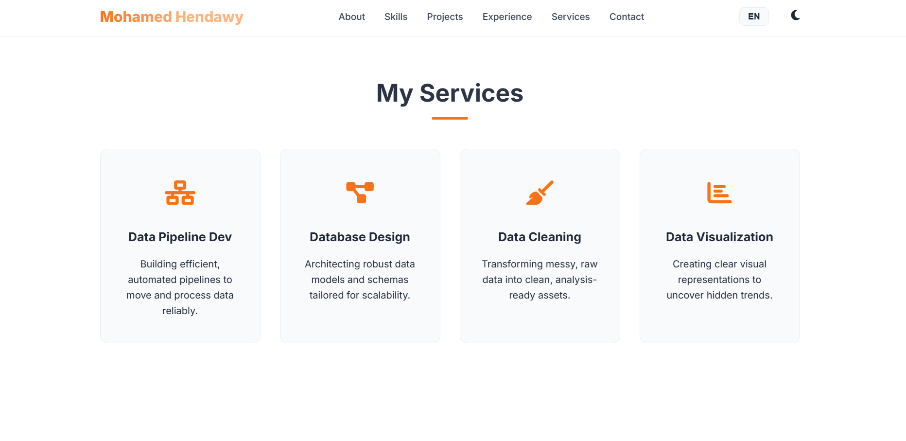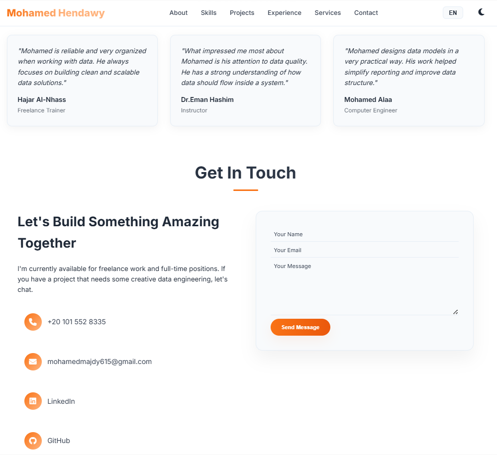 تصميم وتطوير موقع بورتفوليو شخصي لعرض الأعمال والخدمات بشكل احترافي باستخدام تقنيات ويب حديثة مع تصميم متجاوب وسريع يوفر تجربة مستخدم سهلة وجذابة ويساعد على إبراز المهارات والمشاريع بشكل واضح ومنظم.