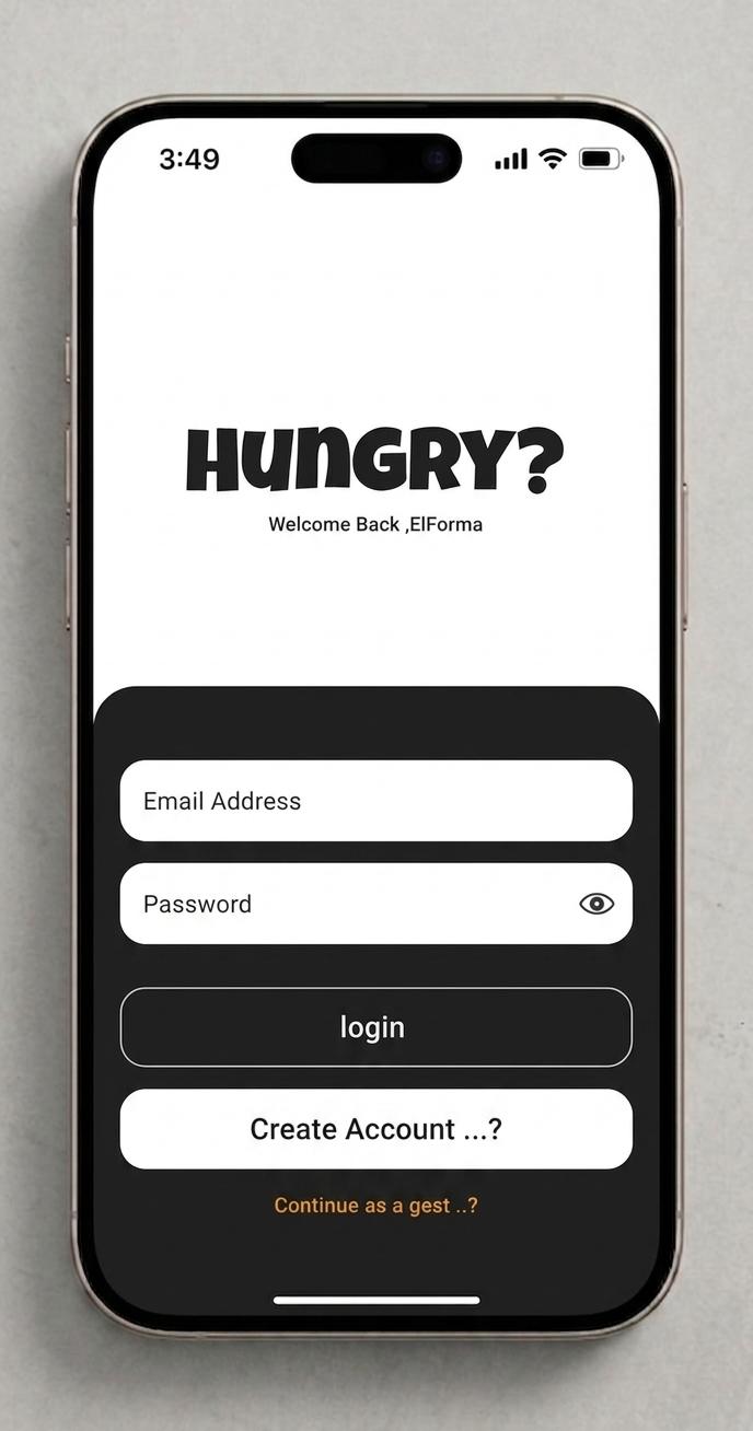 تطبيق "Hungry" هو تطبيق متكامل لطلب وتوصيل الطعام، تم بناؤه باستخدام إطار العمل Flutter. يتميز التطبيق بكونه نظاماً برمجياً حقيقياً وليس مجرد واجهات رسومية، حيث تم ربطه بالكامل بـ RESTful APIs لإدارة البيانات والعمليات في الوقت الفعلي.