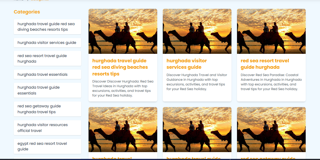 تحتوي الصفحة على عرض لأهم الأنشطة والرحلات السياحية في الغردقة مثل رحلات البحر، الغوص، السفاري، والجولات البحرية، مع توضيح الأسعار والعروض الخاصة لكل رحلة بشكل واضح وسهل القراءة.