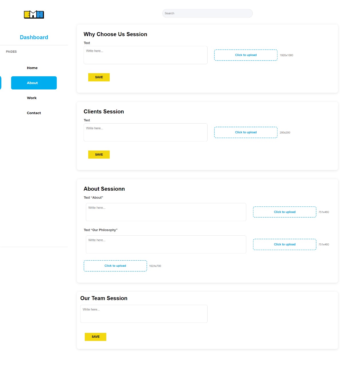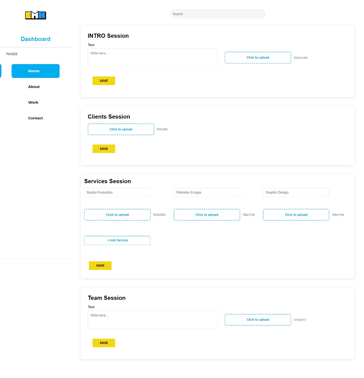 A modern and responsive web application built using React.js and React Router, designed to provide a seamless user experience across multiple pages including Home, About, Work, Contact, and authentication pages (Login & Register). The platform also features a structured Admin Dashboard that allows efficient management of website content such as projects, contact data, and informational sections. The application follows clean architecture principles and is optimized for performance, scalability, and maintainability.