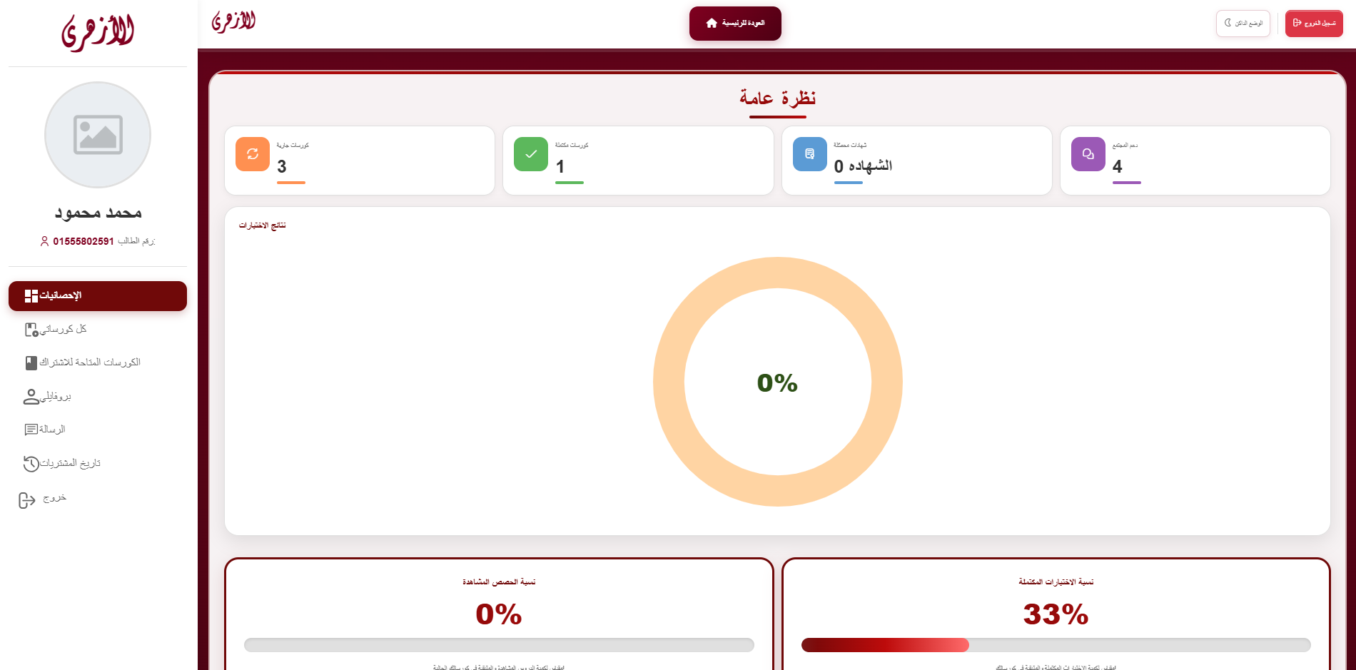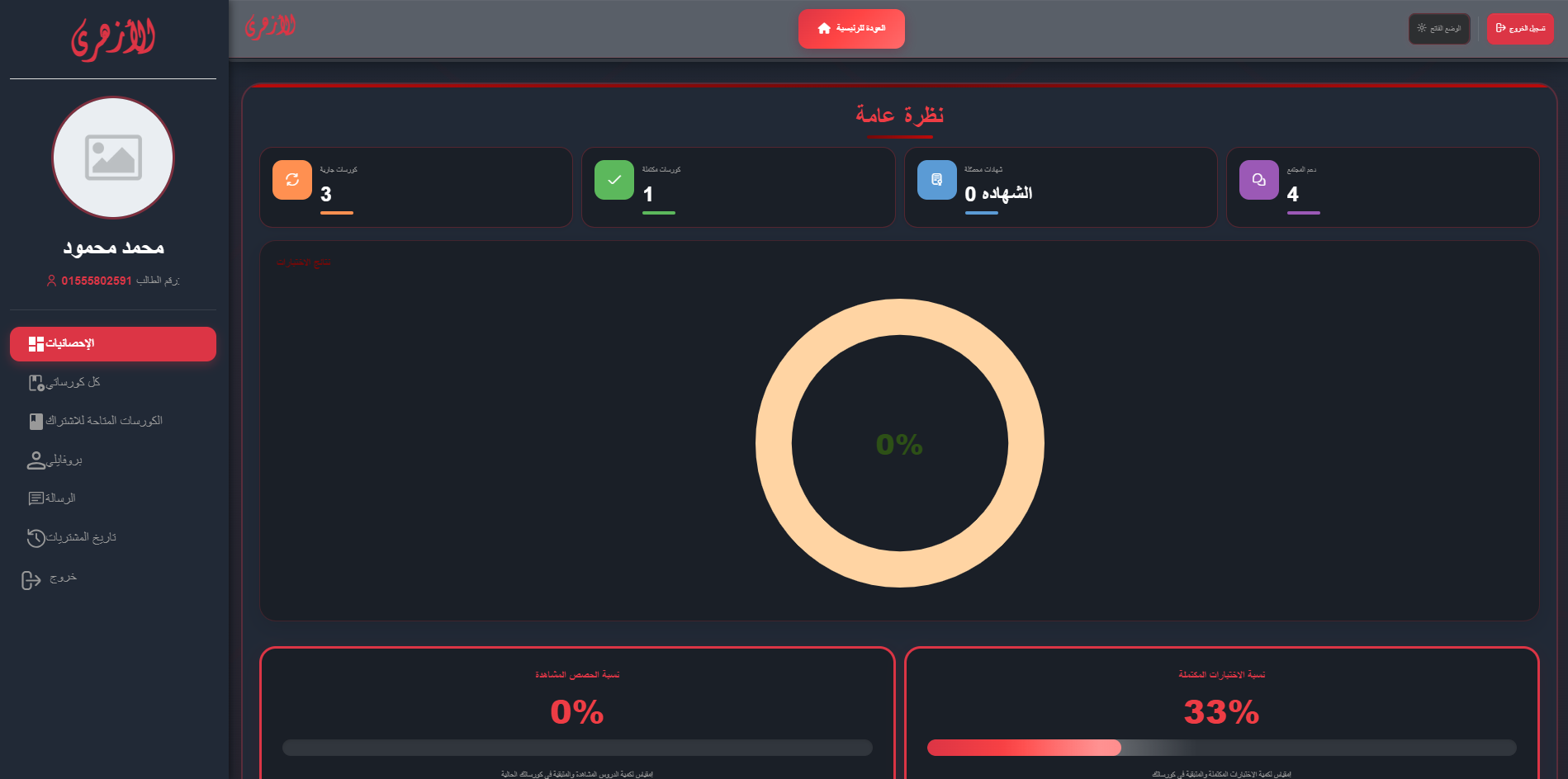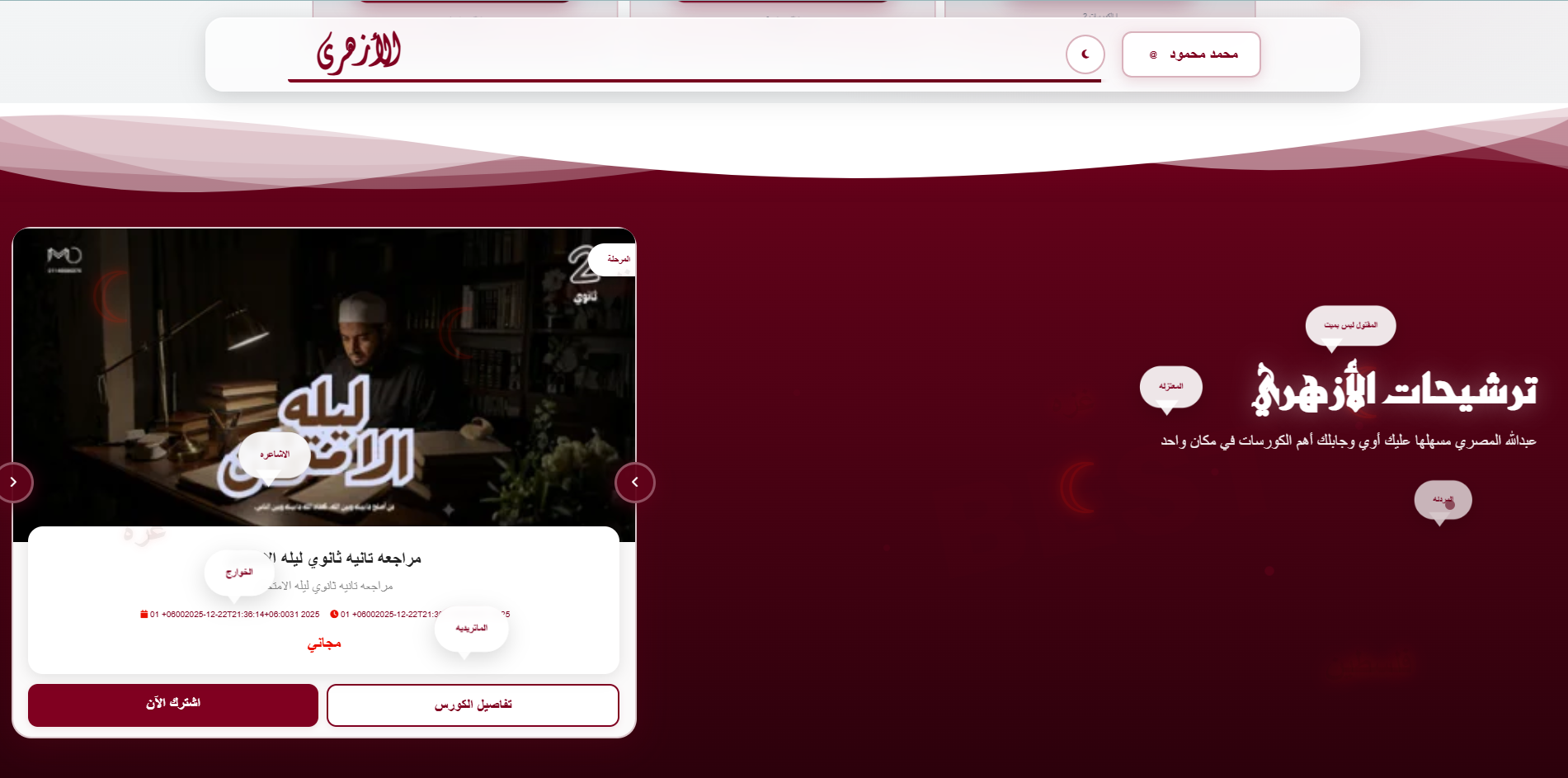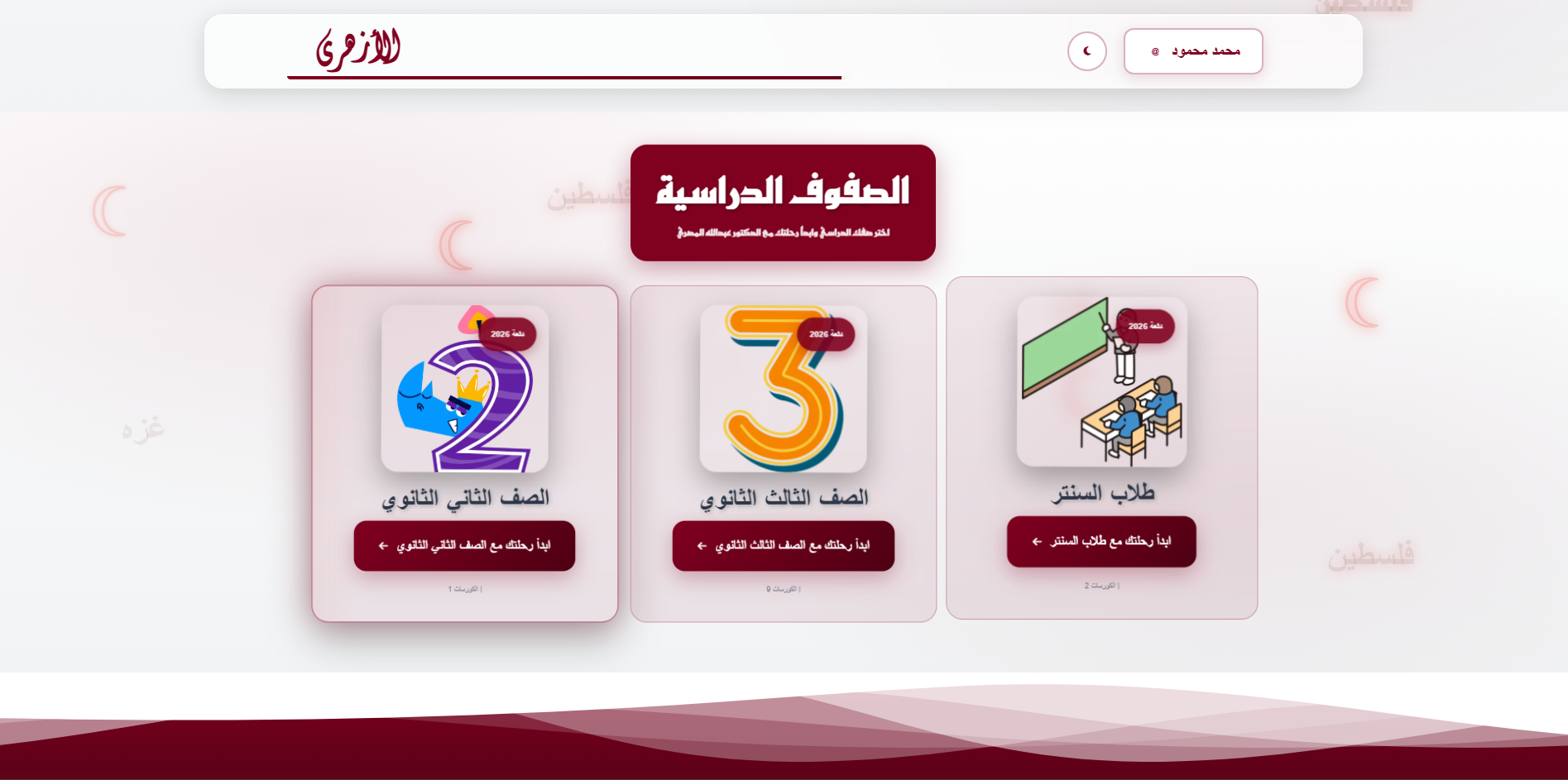 أنا طوّرت منصة تعليمية متكاملة باسم الأزهري، موجهة لطلبة الثانوية الأزهرية. المنصة بتضم نظام كورسات إلكترونية مصنّفة حسب الصفوف الدراسية (ثاني ثانوي، ثالث ثانوي…) مع قوائم واضحة للطلاب والمعلمين، وواجهة مستخدم سهلة الاستخدام.