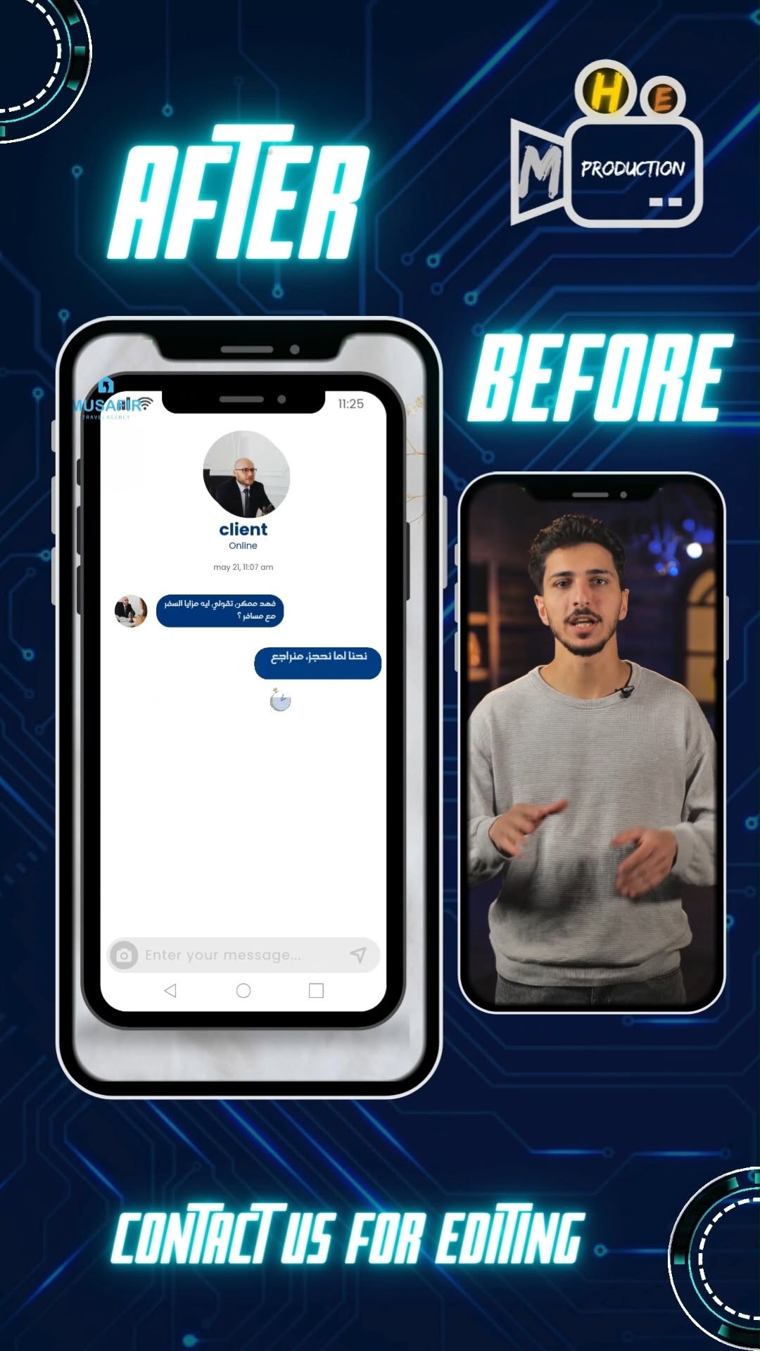 - دمج سلس ومتقن للمقاطع التي تصور مراحل ما قبل وبعد التحول، لضمان انتقال بصري احترافي وجذاب.