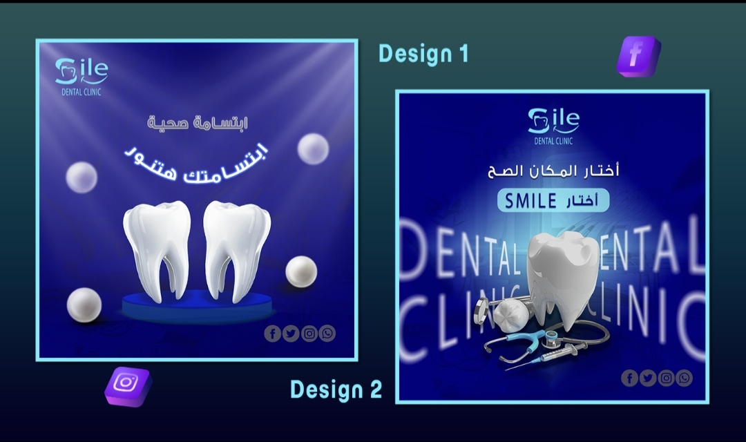 SMILE تهدف إلى بناء هوية بصرية كاملة لعيادة سمايل لطب الأسنان، من تصميم الشعار وتطوير هوية العلامة التجارية المتماسكة إلى تنفيذ تصاميم وسائل التواصل الاجتماعي تقوم الهوية على نمط بسيط ونظيف يعكس الاحترافية والراحة والثقة، وذلك باستخدام ألوان هادئة من الدرجة الطبية وعناصر بصرية تدعم مفهوم الابتسامة الجميلة ورعاية الأسنان الممتازة