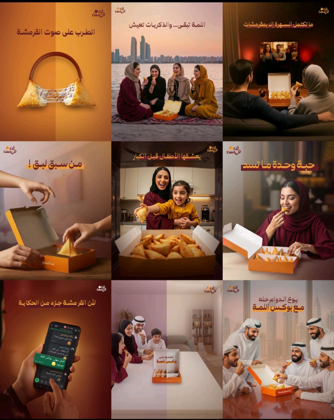 تصاميم سوشيال ميديا ل لمة قرمشةاستخدمت الذكاء الاصطناعي في إنشاء الصور بجانب الفوتوشوب في التعديل و التصميمكل تصميم يتميز بفكرة اقناعية مميزة من ابتكاري