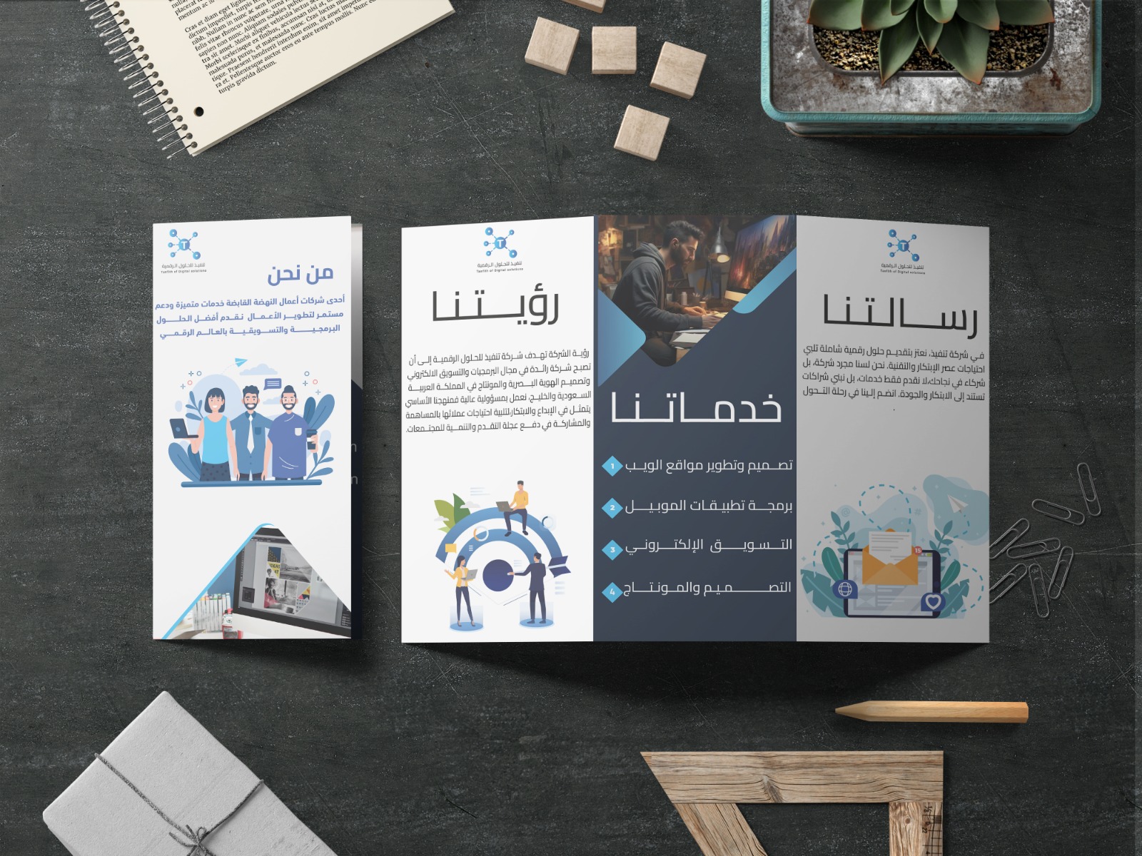 تصميم وتطوير الهوية البصرية الكاملة لشركة "تنفيذ للحلول الرقمية "، مع التركيز على خلق انطباع احترافي يعكس الدقة والإنجاز. تضمن المشروع: