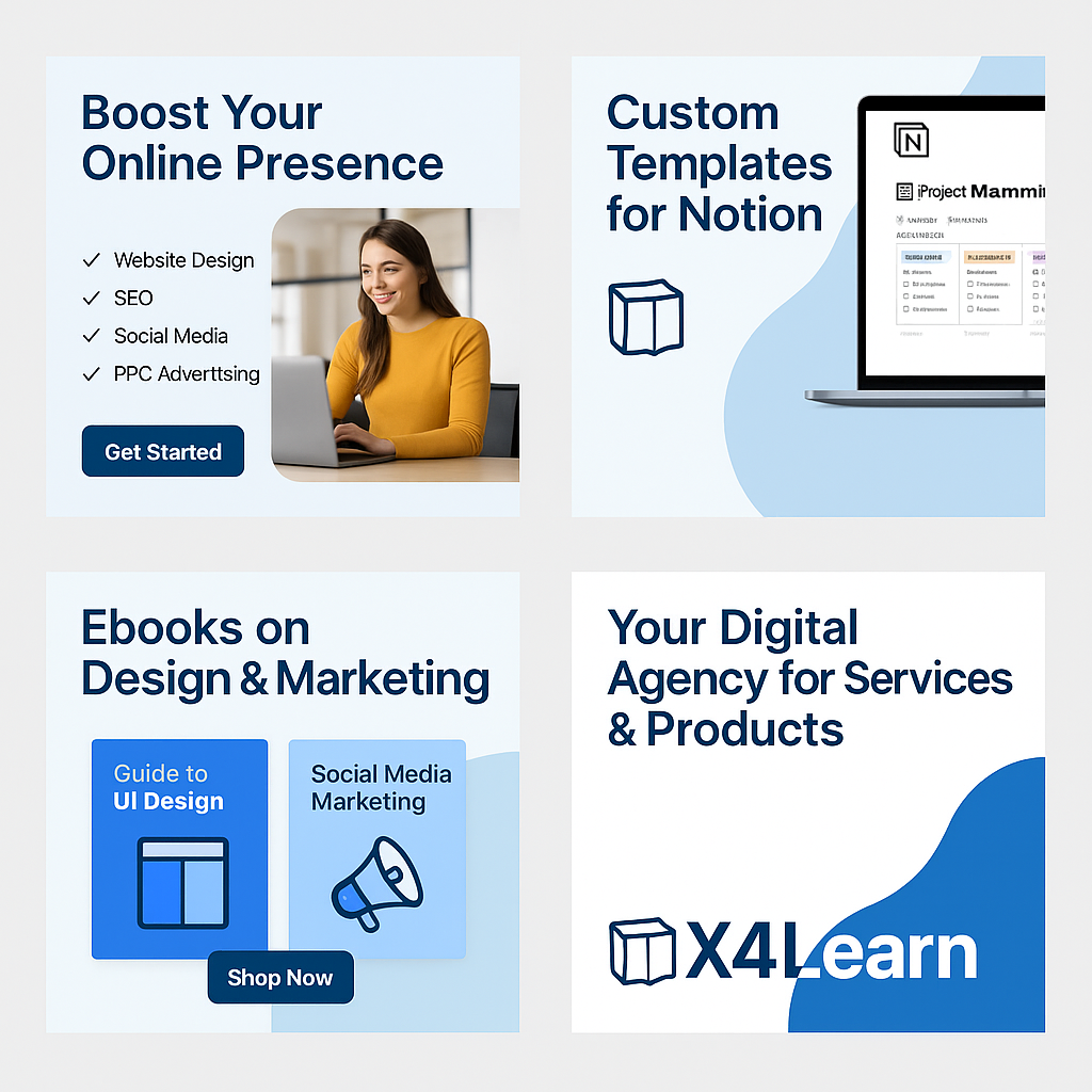 هوية بصرية حديثة لبراند X4Learn تعزز الثقة والوضوح باستخدام تصميم متناسق وأدوات Adobe وأيقونات Lucide.